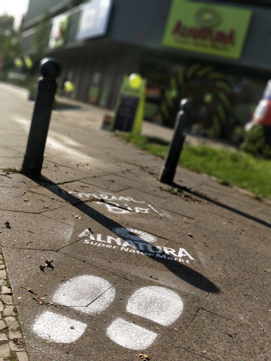 Temporäre Kreidespray Botschaften, die frei Hand oder via Schablone eine gute Alternative zu Plakaten und Bannern sind. Durch Witterungseinflüsse selbst beseitigend.